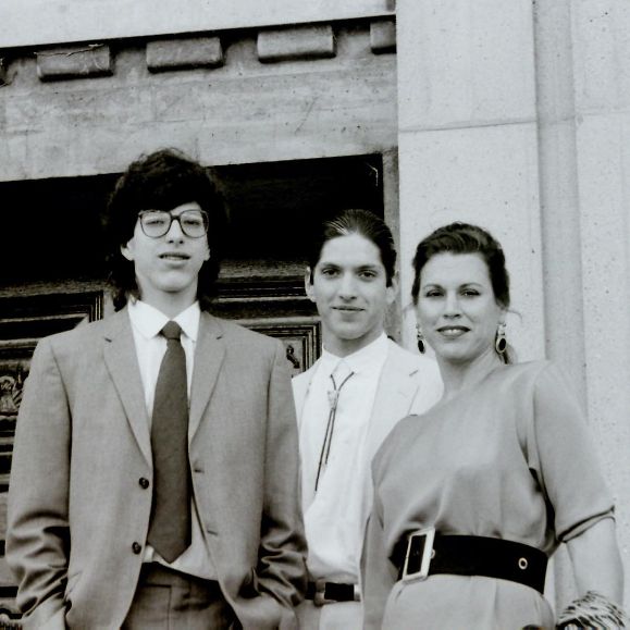 Jeremy Falk (left) with his brother and Mom in 1986.